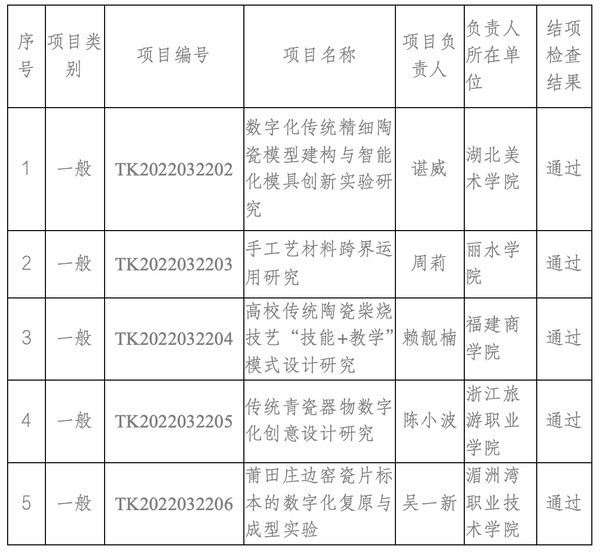 根据《文化和旅游部重点实验室管理办法》和《传统热成型手工技艺与数字化设计文化和旅游部重点实验室开放项目管理办法》相关要求,重点实验室学术委员会对2022年度5个项目提交的结项材料进行了评审,现将结项检查结果公示如下: